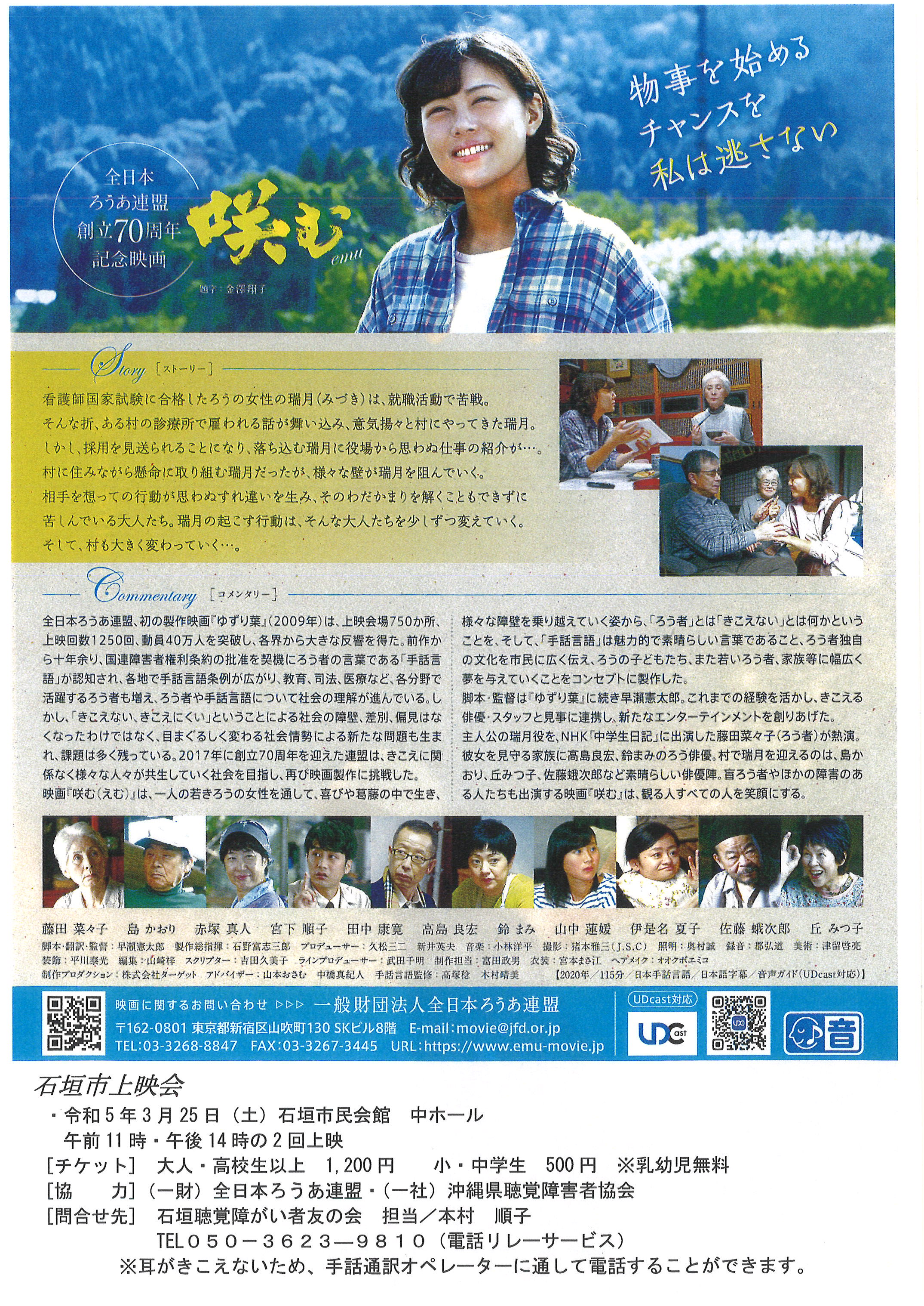 【石垣市 令和5年3月25日(土)上映会のご案内】 「咲む」 全日本ろうあ連盟創立70周年記念映画 厚生労働省推薦 文部科学省選定(青年・成人・家庭向き)