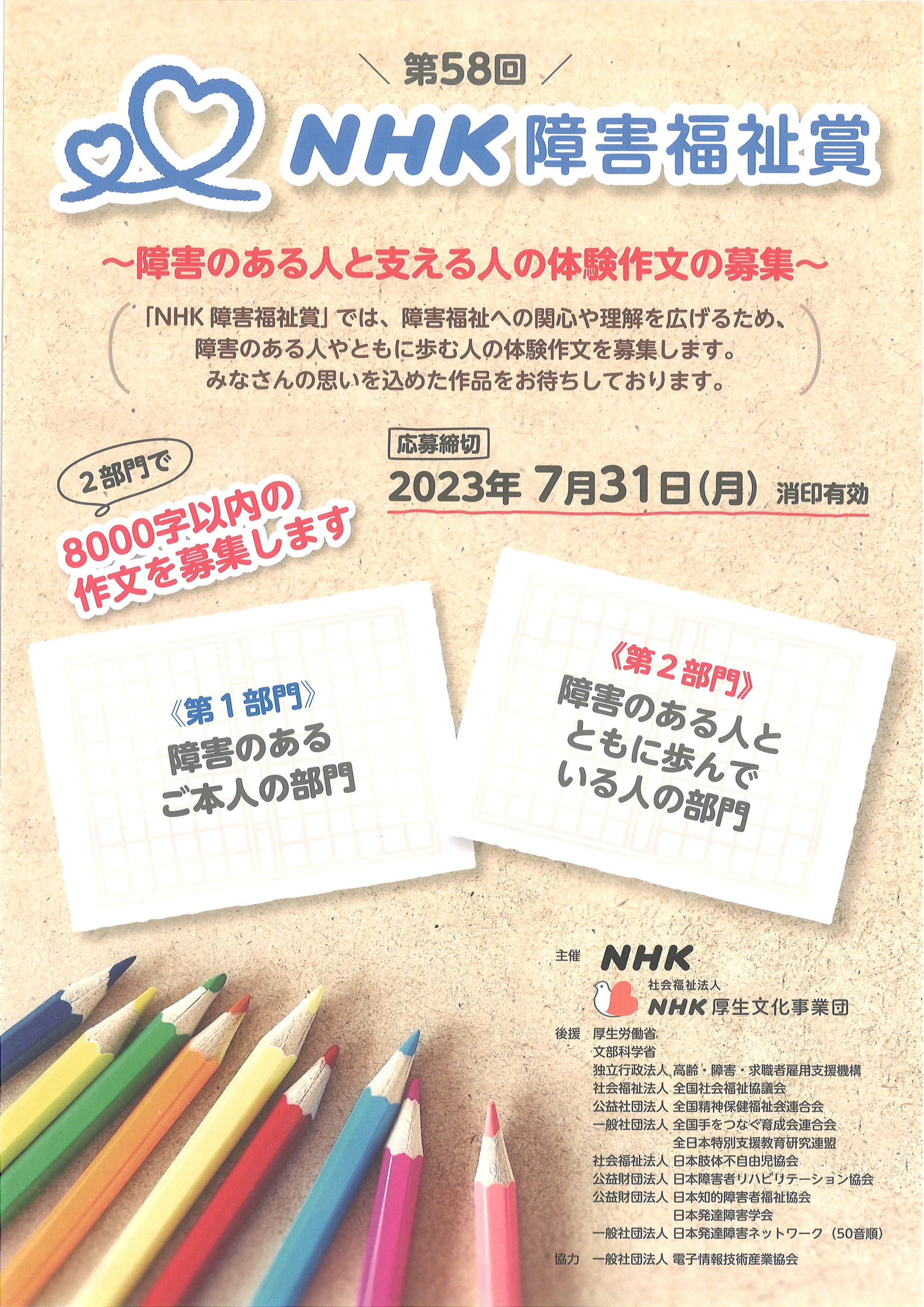 第58回「NHK障害福祉賞」作文と第28回「NHKハート展」詩のご案内