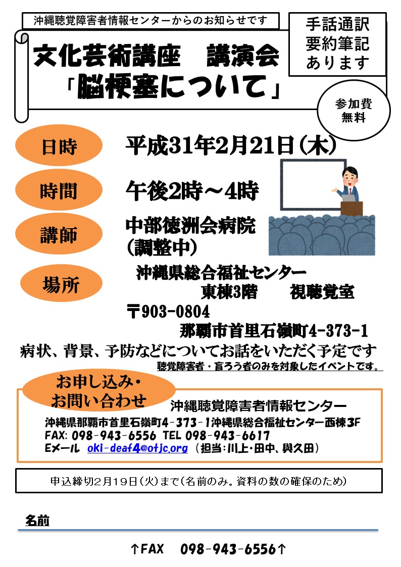平成31年度、令和元年度1年間沖縄聴覚障害者情報センター、よろしくお願いします。