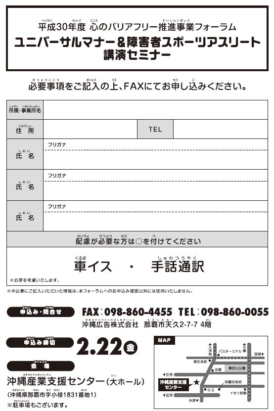 申し込み:裏の申し込み用紙に記入し、FAXで申しこみください